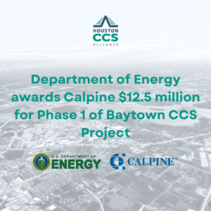 The Houston CCS Alliance is proud to share that member company Calpine was recently awarded $12.5 million to begin Phase 1 of their Baytown CCS project by the Department of Energy (DOE) as part of a larger award of up to $270 million to complete the facility.